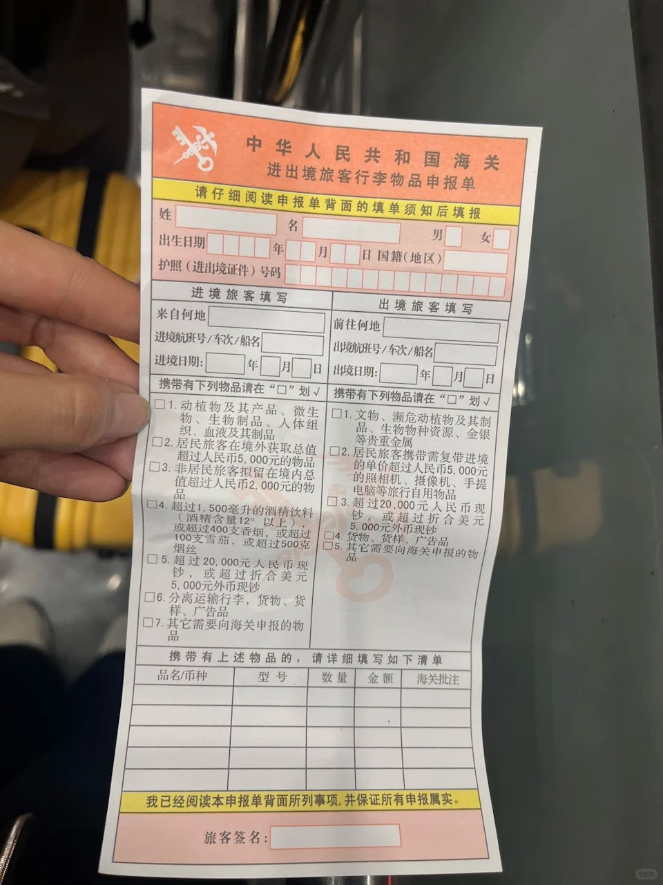 但需特别注意,奢侈品(如高端腕表、精品包、贵重首饰等)若超出 5000 元免税限额,必须主动填写申报单,并按物品类别缴纳税款 ——