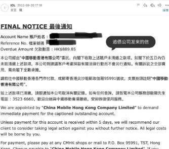 现在又来一个电话费不遵守契约精神的……已经收到收数公司的信居然还这么淡定,并且这位香港城市大学的硕士并没有打算缴纳的意思,能逃就逃,看来读书真的只能提高学历而不是素质。如果放任这种人的行为,总有一天运营商们会让内地留学生一次交齐24个月的话费才能办卡,到时候遗害的就是之后的留学生了。