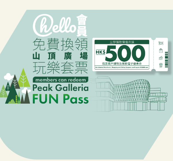 恒隆地产旗下的山顶广场今日(16日)公布新推广活动,本地居民或者游客只要登记成为hello会员,即可免费领取价值500元的山顶广场玩乐套票,套票适用于「大富翁梦想世界」及「Go Museum」两大玩乐主题馆、餐饮及零售消费。