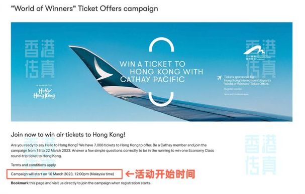 不同的航空公司针对不同地区的旅客,推出了不同的入口,如果一个一个去找,会非常辛苦。因此推荐,直接从香港特区政府的“飞遇世界大赏”活动官方网站(总入口),进入相应地区的赠票活动页面。