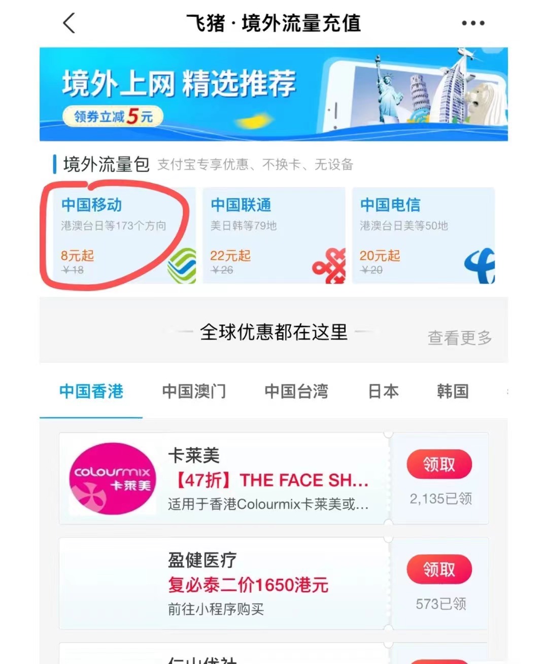 时隔三年,第一次过去的时候没提前准备,我用的电信卡,但是电信卡暂时买不了流量,所以那几天都是连老公热点,太麻烦了!如何买境外流量1打开支付宝——充值中心——更多流量2下拉到底部,选择境外流量3选择对应服务商4输入号码,选择目的地中国香港5选择对应流量购买6收到短信,根据操作打开设置——蜂窝网络——蜂窝号码——网络选择——选择和短信上一致的运营商网络7语音和数据项原则对应的4G或者3G这样就可以用大陆号码在境外也可以使用网络辣~