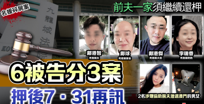 名媛碎尸案6被告分3案押后7·31再讯 前夫一家须继续还柙