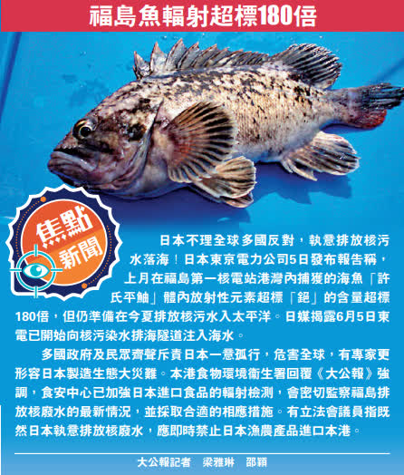 城大海洋污染国家重点实验室主任梁美仪今日(9日)于电台节目表示,日本计划将经处理的福岛核电厂核废水排入大海的做法不道德,较负责任的做法,是将核废水排放至本土湖泊。