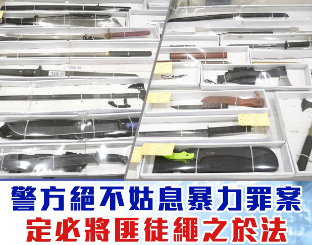 经深入调查及翻查大量闭路电视,警方迅速锁定疑犯身份,于同日拘捕一名38岁本地男子,涉嫌干犯“企图行劫”及“藏有攻击情武器”罪,并于其住所检获犯案时的衣着及涉案的开山刀。此外,人员亦搜出大批武器,包括军刀、日本刀、斧头等,被捕人士现正被扣留调查。