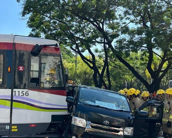 今早(27日)近9时,天水围天瑞路天瑞站有轻铁撞客货车。现场消息称,客货车上有3人受伤,而轻铁上则有1人受伤,幸全部轻伤。大批消防员在场协助,伤者由救护车送院治理。受事故影响,轻铁服务受阻。