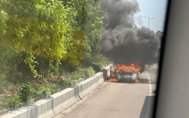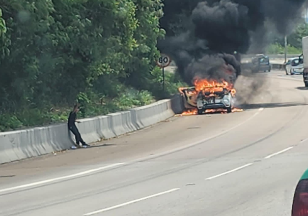 元朗公路私家车“自燃”变火球,司机弃车逃生