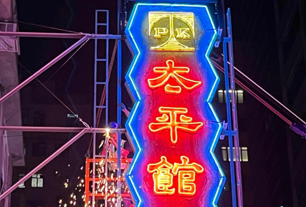 首创“豉油西餐”的香港百年老牌餐厅“太平馆餐厅”,继尖沙咀老店的霓虹灯招牌于今年2月“熄灯”拆卸后,其佐敦分店的霓虹招牌,亦在昨晚(7日)“熄灯”落幕。