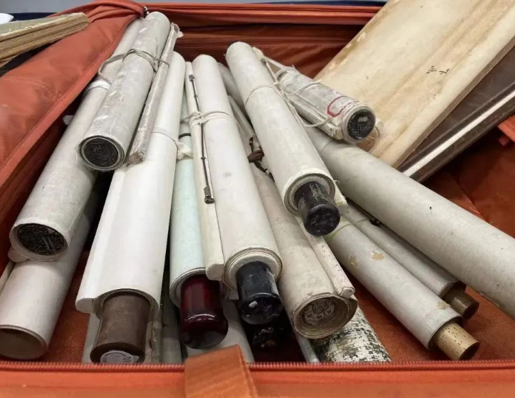 近日,深圳海关所属皇岗海关关员在福田口岸出境通道发现1名香港籍男性旅客的行李物品机检图像异常,遂将其截查,随后从其黑色行李箱中发现疑似书画文物共计64件。