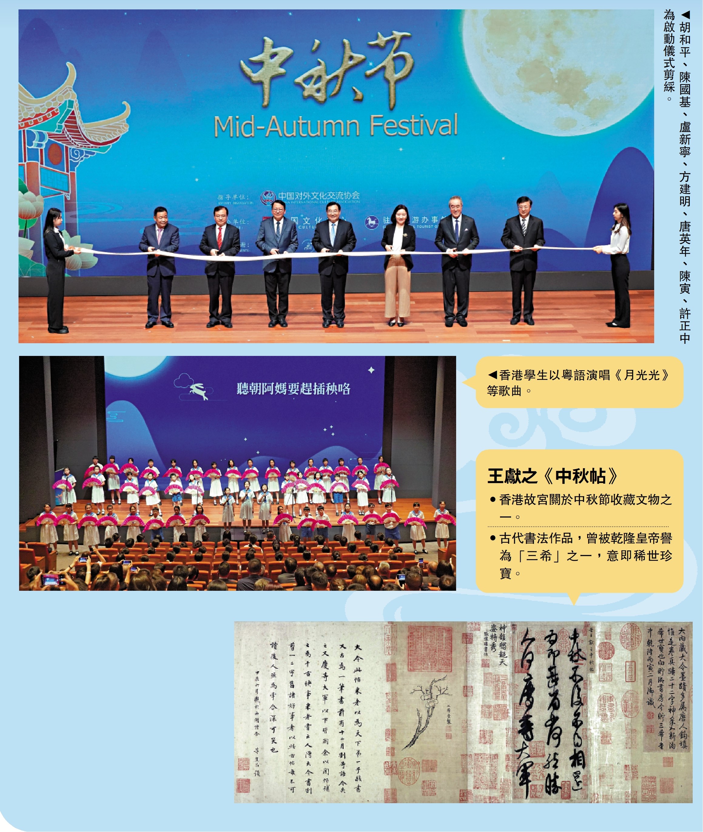 由国家文化和旅游部指导的“天涯共此时——中秋节”全球联动活动,于9月22日下午在香港故宫文化博物馆举办启动仪式。全球60馀个中国文化中心和旅游办事处由即日起至10月6日期间面向驻在国(地)民众开展演出、展览、庙会、互动体验等内容丰富、形式多样的活动,与驻在国(地)民众共同欢度中秋佳节。
