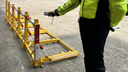 新款的遥控移动阻车器,以镁铝合金材质制成,由6件组件组合,重108公斤。警员无需特别工具,只需10分钟装嵌完成一个“L 型”支架,并在20米距离内遥控移动阻车器向左或向右移动,以往的器具则无法遥距移动。当车辆撞上阻车器,底部支架会翻起,后部有“抓地鈎”增加摩擦阻力,在短距离内阻止车辆向前,支架上设有“圆筒式破胎装置”,如果车辆不停车会刺破车胎放气。