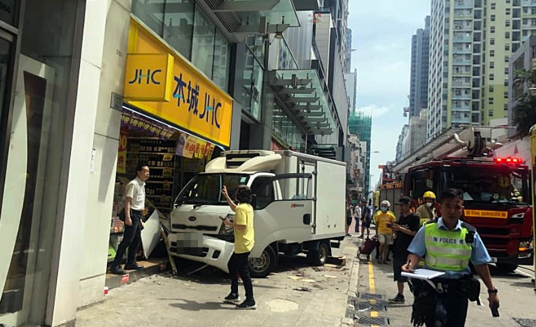 事发于今日(5日)中午12时许,一辆白色私家车停泊在元州街334号外,64岁男司机上车准备驾车离开时怀疑失控,首先撞向前面一辆停泊的货车车尾,继而将货车撞上行人路上,货车被撞后撞入一间地舖,店舖门前的货品被撞毁,期间私家车继而向左衝前,在约50米外再撞向一辆密斗货车车尾。