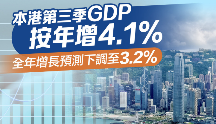 本港第三季GDP按年增4.1%,全年增长预测下调至3.2%