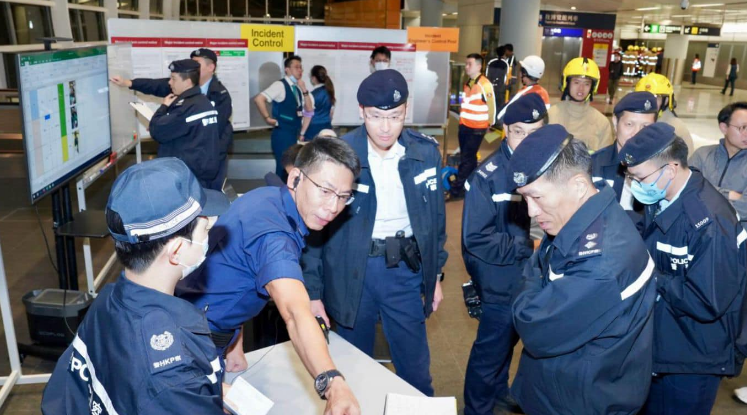 此次联动演习模拟一辆机场快綫列车受严重事故影响,导致大量伤者需要即时撤离及救援,继而展开相关的跨部门拯救行动。演习期间,警方有效地协调多部门资源进行快速拯救,总区应变大队亦到场指挥整个行动。