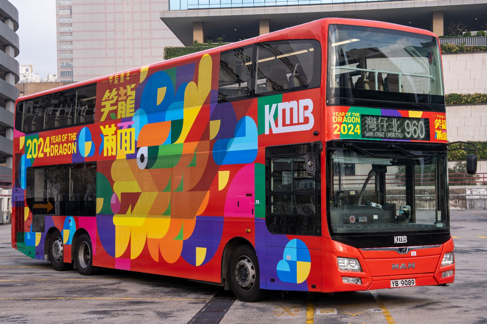 龙年生肖巴士主要行走960线[屯门(建生邨) 会展站],穿梭港九新界,将福气传遍整个香港。