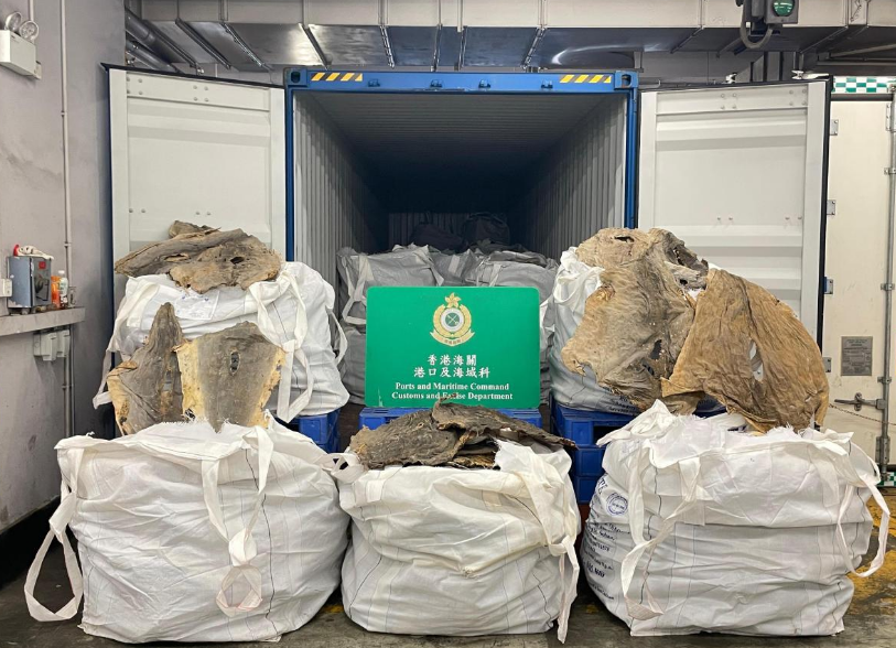 香港海关今日(11日)公布,昨日(10日)在葵涌海关大楼验货场检获逾3100公斤怀疑受管制乾鲨鱼皮及逾140公斤怀疑受管制乾鱼翅,估计市值共约60万元。这是海关自《保护濒危动植物物种条例》附表I修订于2023年12月15日生效后,首次检获新增至该附表所列的鲨鱼物种。
