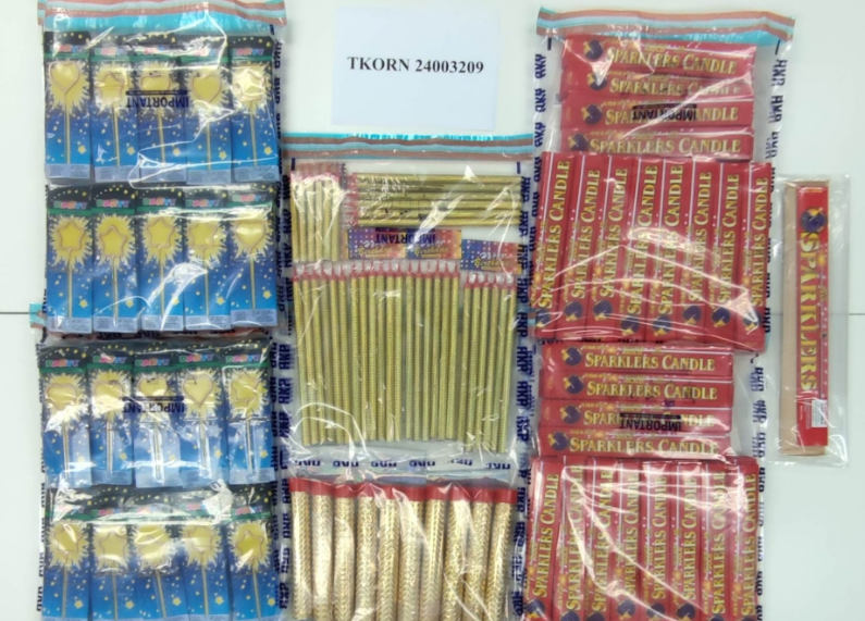 农曆新年将至,警方持续打击非法燃放及储存烟花罪行,将军澳警区特遣队昨日(3日)中午在将军澳贸业路进行反罪恶巡逻时,发现一名男子形迹可疑,于是上前截查,在他身上及其驾驶的私家车车尾箱内,共搜出48支烟花蜡烛、200包“滴滴金”及240盒“仙女棒”,总值约4,000元。