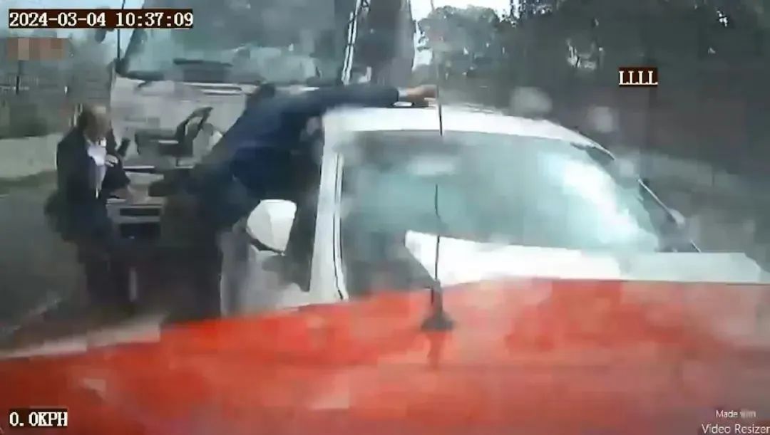 两名男司机随后下车,各自检查车身后,站在路上理论。