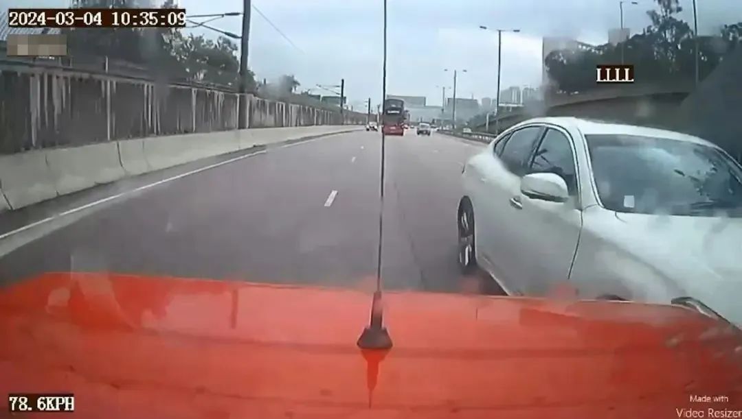由行车记录影片看到,上午约10时35分,出事的士本身在快线行驶,司机切向中线时,的士左车尾撞到本身在中线的私家车右车头。两车再直行约20秒后,一前一后停在中线。
