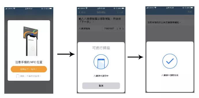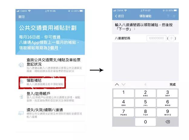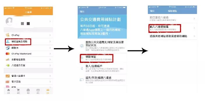 2⃣️首次使用app领取补贴,需要输入八达通账号。  3⃣️拍卡,领取补贴。还是将八达通放到手机背部的上方。