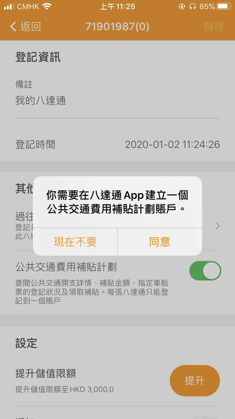 1⃣️点击已登记好的八达通账户,打开“公共交通补贴计划”。