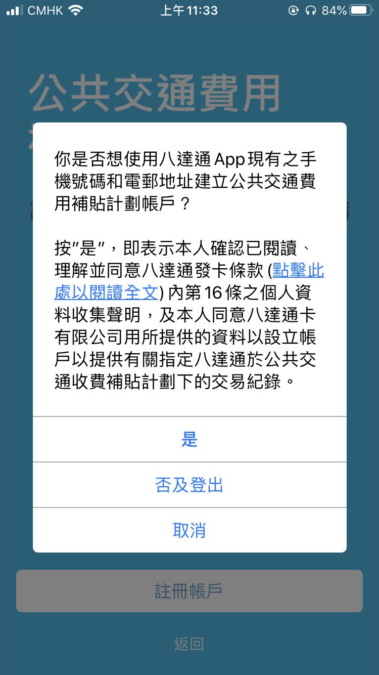 同时,也可以注册一下,方便查看交通补贴情况,下次领取时,就不用再次输入八达通账号了。