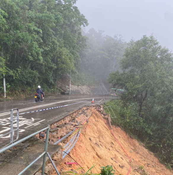昨日(5日)持续暴雨导致香港多区出现水浸及山泥倾泻,其中西贡清水湾道五块田附近一块山坡大面积塌陷,行人路地面崩塌,露出地下喉管,有行车线要封闭。运输署今日(6日)表示,清水湾道山泥倾泻临时斜坡巩固工程已经完成,清水湾道近坑口永隆路已于约凌晨一时全面恢复两线行车。