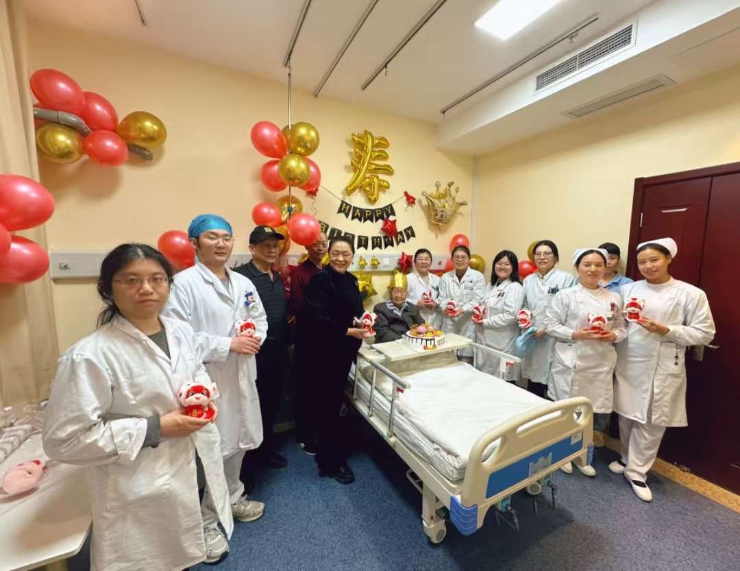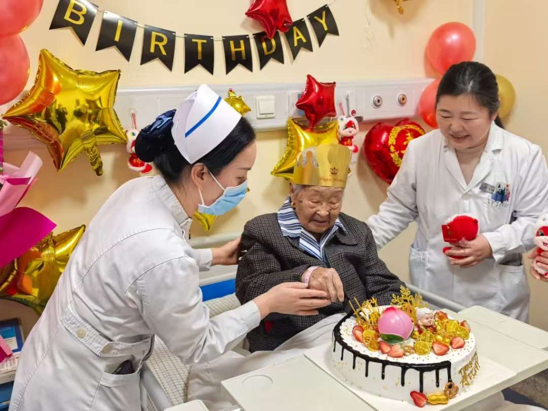 “祝您生日快乐!”“祝您身体康健”……1月7日腊八节当天,北京市鼓楼中医院老年病区沉浸在充满温情的生日祝福里。原来,在科室主任顾雄华和护士长陈荣带领下,科室成员们共同为一位96岁的患者精心安排了一场庆生活动。