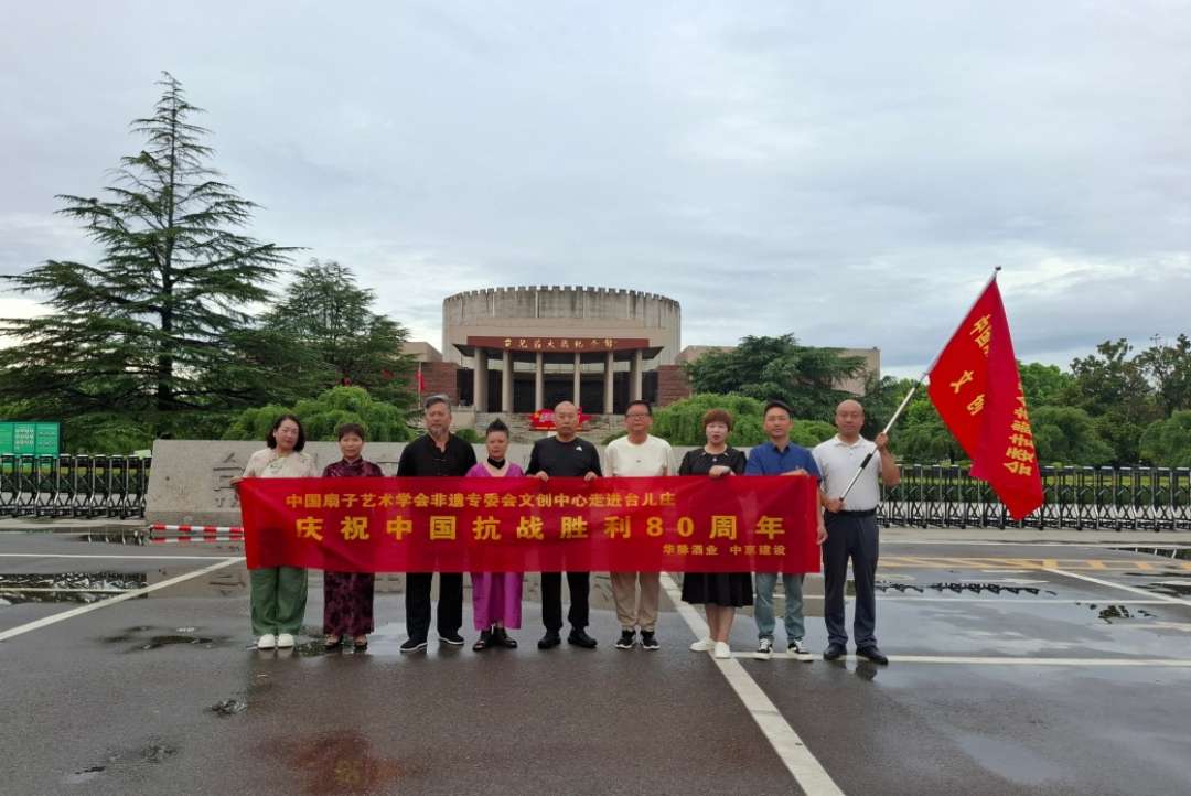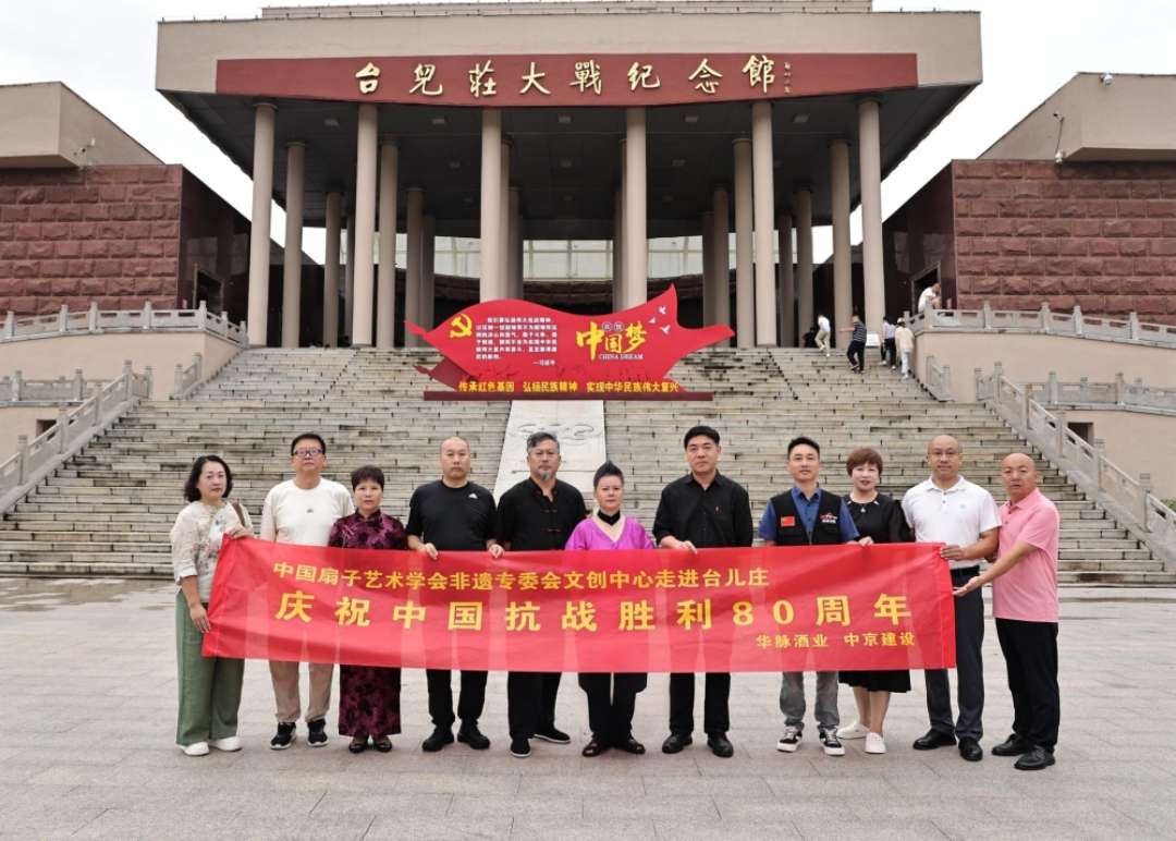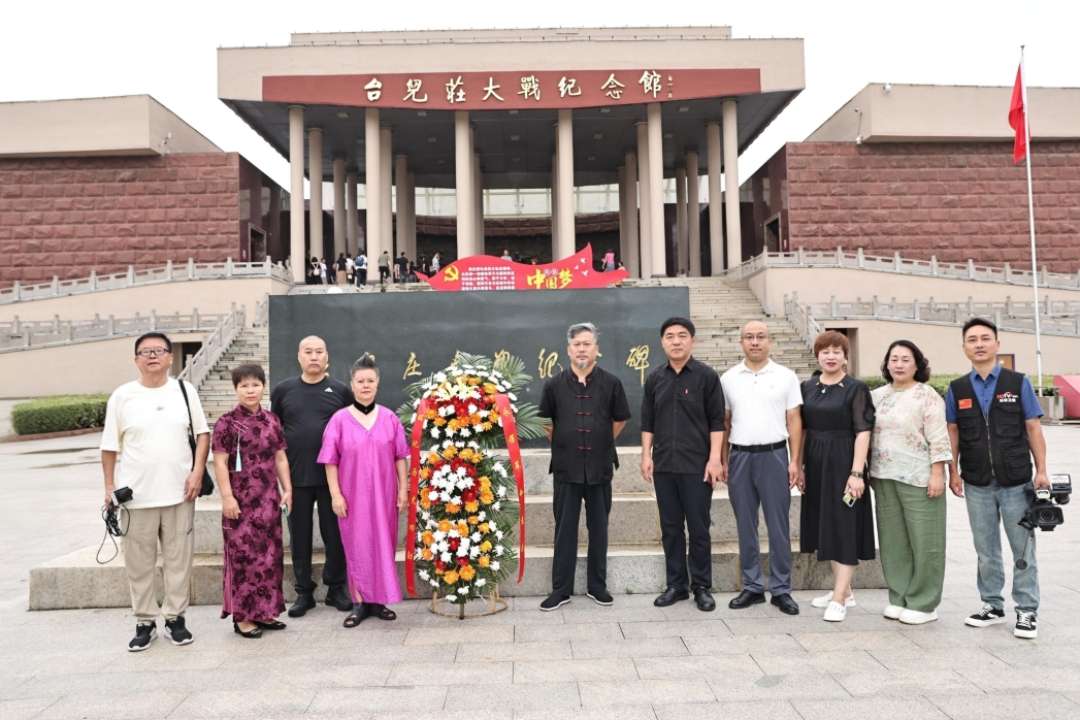 当日,制片人黄帝导演率领中国扇子艺术学会非遗专委会文创中心赵东海、王永明、王桂香和环球卫视等一行人,专程前往台儿庄大战纪念馆,庆祝中国抗战胜利八十周年,开展缅怀先烈活动。在台儿庄大战纪念碑前,众人怀着崇敬之心敬献花篮,向在台儿庄战役及整个抗日战争中牺牲的英烈表达深切缅怀与崇高敬意。