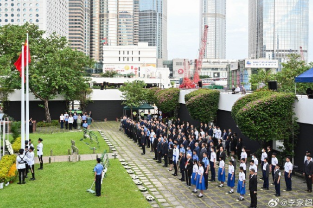 当天的香港大会堂纪念花园点缀了白色的鲜花,显得庄严肃穆。仪式在早上8时举行,现场先昇起国旗、区旗并奏唱国歌,其后出席嘉宾默哀2分钟表达追思。行政长官李家超及出席仪式的不同代表,先后致献花圈。