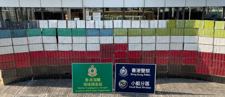 香港海关和水警昨日(23日)在大屿山附近海域採取联合行动,检获约290万支怀疑私烟,估计市值约1073万元,应课税值约725万元。