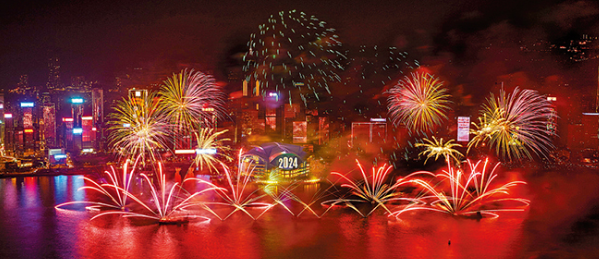 除夕烟花汇演横跨中环铜锣湾,港岛三地标发放“许愿流星”