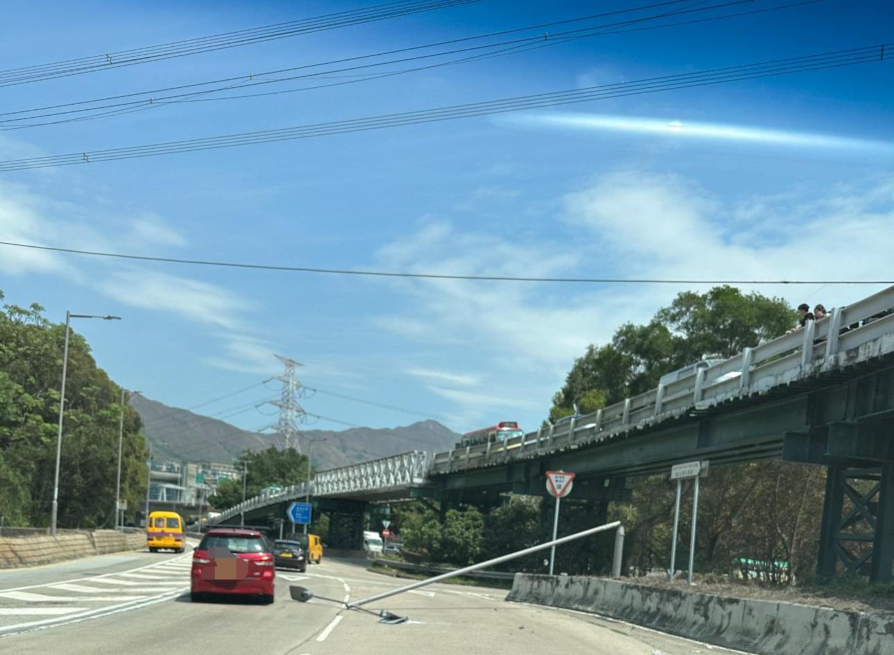 今日(19日)中午12时29分,一名小巴司机报案,指驶经青山公路元朗段时,疑有电缆损毁鬆脱堕下,击中其小巴车顶及一支灯柱。