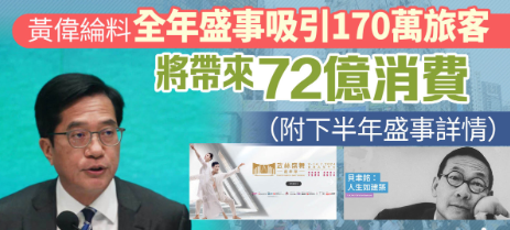 在推动盛事方面,黄伟纶指出,2024年全年预计有约214项盛事举行,上下半年均超过100项,政府特意提前公布盛事年表,是为了不同的行业经营者提早掌握情况、提前部署作出宣传,充分把握盛事带来的商机。